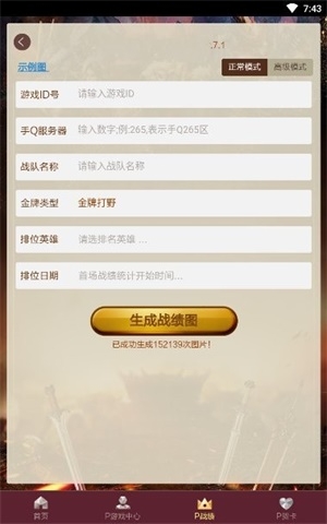 想要将自己的战绩排名进行P图秀一把?推荐给你这款王者P图神器app。操作非常的简单,可以算P图界的无脑操作了。只需要将你的头衔等信息输入进去即可生成。王者100星都不是梦想。感兴趣的小伙伴就赶紧下载吧!