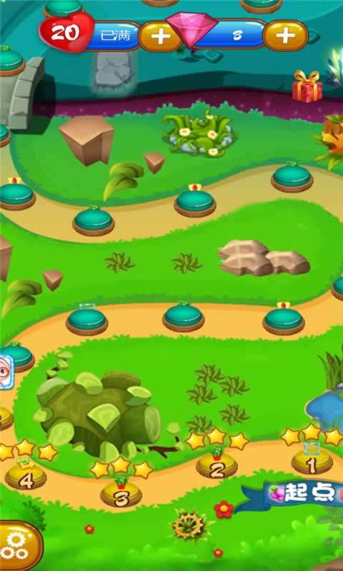 1、地图上的关卡都为大家准备好了,有的关卡在完成后会赠送给你一些礼物盒子,从起点慢慢的向更远的地方蔓延。