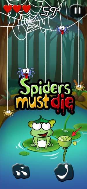 蜘蛛必须死游戏安卓版是一款捕食类型的游戏,在这里你将会变成一个非常可爱的青蛙,然后去进行捕食,这个场景里面是有非常多的蜘蛛你是可以去进行猎杀的,蜘蛛们在这里弄了很多的网,你要将这些很烦人的蜘蛛都消灭掉,然后去进行更多的冒险,很有趣的一款游戏,关卡也是很多的,游戏的节奏也并不是很快,你可以很悠闲的在这里玩耍。