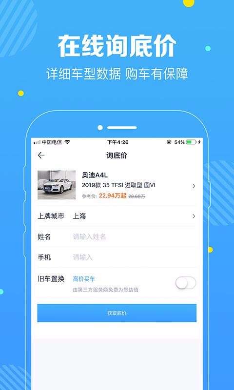 选择要购买的汽车型号,应用程序将为您提供汽车的最新报价信息;