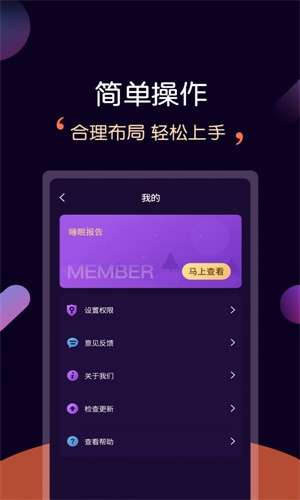平时忙碌的工作是否带给你击打的压力,使你晚上无法入睡,现在下载这款轻松睡眠app,帮助你轻松的入睡,这是一款帮助用户轻松入睡的软件,上面有者许多强大的功能帮助我们检测到晚上睡眠时的数据,分析失眠的原因,制定合理的锻炼方案,让我们从此摆脱失眠的痛苦。