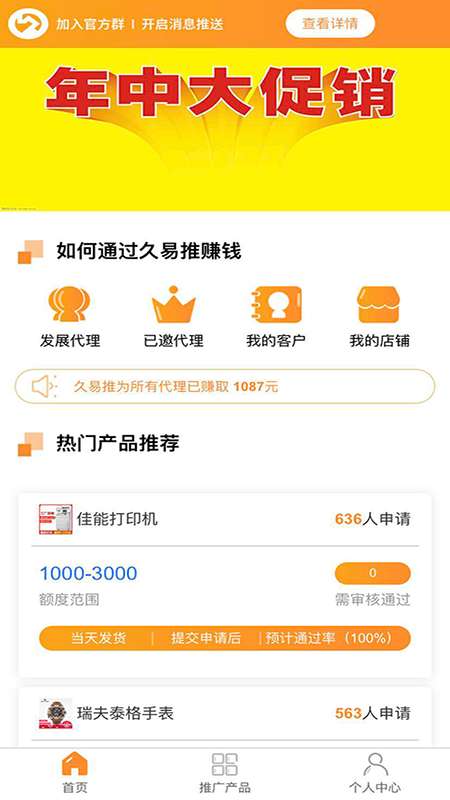 久易推是非常实用的一款代理型软件,而这个软件无论是用户还是企业,都可以在这个软件当中成为软件商品的代理,可以让用户在软件当中把相应的流量直接变现到自己的账户当中同时还有非常专业的管理流程,可以让用户在使用的过程中更好的查阅各种订单的相关信息以及订单的详细情况,让自己能够在判断的时候有更加的准确,也可以使用户在使用的过程当中能够更加轻松的进行使用