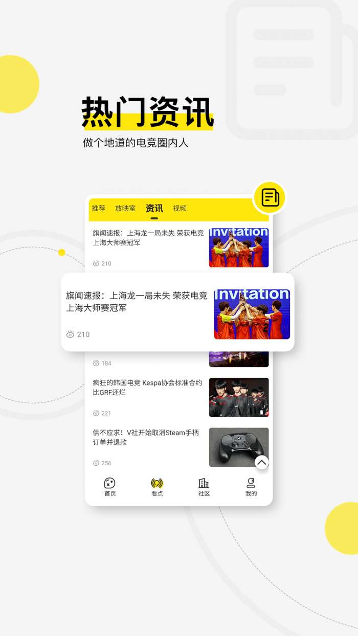 电竞软件大全电竞依托网络的渠道已然成为一种热门的电子体育项目,各种游戏大型竞技和知名的职业选手的动态都会受到人们的关注,电竞软件也因此但省份,软件为用户带来最全最新的电竞热门资讯,满足你对于电竞圈的一切疑问,那么好用的电竞软件有哪些呢?小编为你推荐以下几款。