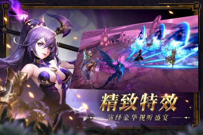 1,精美游戏画面,炫酷技能释放,回合制战斗玩法,多种地图场景随意搭配,各种英雄自由组合阵容。