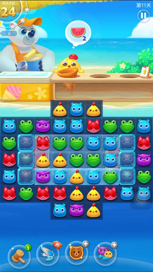 强力推出6种新鲜玩法,每种关卡类型都有小动物们的陪伴哦,精心设计的120关,给您带来清新丰富的体验,更有全新特效效果,消除轻松又爽快。呆萌可爱的小浣熊变身船长,带领小伙伴们畅游海滨,调皮的小鱼、Q弹的软糖、易碎的蜂蜜罐、会跑的玫瑰花、愤怒的小海星、美丽的瓶中蝶……旅途中有更多惊喜等你发现!