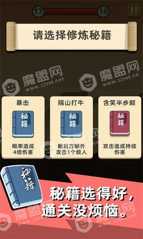 2、每一个门派就会代表着一场战斗,如果能够获胜,可以解锁新的秘籍;
