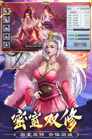 游戏场景特色多元化,其中密室传功,训诫调教为密室双修的独到场景;玩家可解锁收集不同女将,她们中有软萌可爱的萝莉,有强势霸道的御姐,更有性感妖娆的火辣女神,三千佳丽,总有一款适合你!玩家通过与众美人“双修”获得特殊合技能,战出不一般的风采。