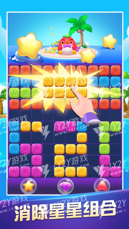 1、欢乐的消星星游戏,趣味的闯关玩法,相同颜色的方块可以直接进行消除得分;