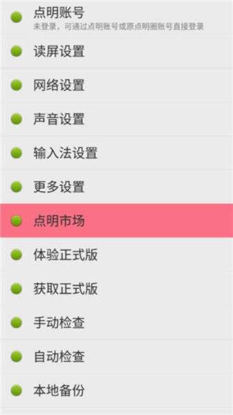 点明安卓app是一款让盲人、弱视者、老年人无障碍使用安卓手机的国产触屏软件。点明安卓中集成了科大讯飞语音库,通过语音和独特便捷的操作手势,让盲人无障碍操作手机的所有功能。其中,独有的虚拟屏幕功能使盲人可以阅读和操作屏幕上的所有字符,同时支持双音标库,使屏幕阅读操作不会与阅读和观看新闻发生冲突。感兴趣的朋友不要错过下载点明安卓app。