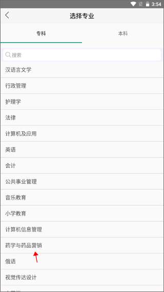 3、下一步是选择你想转到的专业。