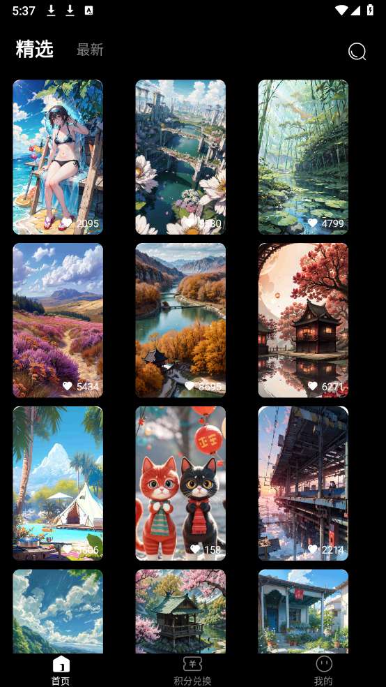 3、大量壁纸以瀑布流的形式展示,用户可以通过滑动屏幕来浏览不同主题的壁纸,找到自己喜欢的图片。