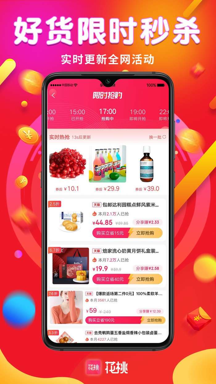 花桃app是一个集全互联网折扣于一体的优惠券导购平台,汇聚了淘宝、京东、拼多多等主流电商平台的大牌产品,并提供全线包邮服务。每个人都可以随时在手机上下订单和购物。每天各种商品都有折扣,完全可以满足用户的购物需求。该平台提供各种超值优惠,如1元商品、每日限时抢购、零元购物和9.9元专区。严格把控产品质量,同时更新千万优惠券资源,让消费者以更低的成本享受优质的购物体验。