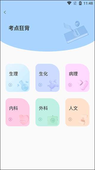 1、进入研大医题库App,点击主页的考点狂背。