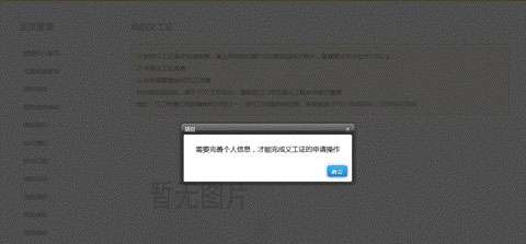 2、点击“我的义工证”功能,跳出完善个人资料的界面。