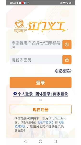 1、义工个人在“江门志愿者”网登陆义工账号和密码。
