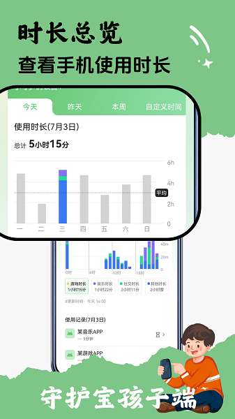 2、进行全面守护,知道孩子日常使用手机的时间。
