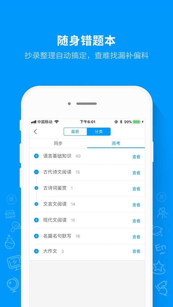 3、错误簿:自动收集学生在问题中的错误,并形成错误簿,以便将来复习。