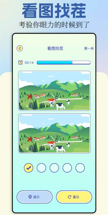3、提供了一个识别图片差异的游戏,用户可以通过这个游戏来测试和提高他们的视力。