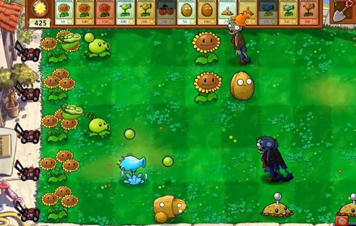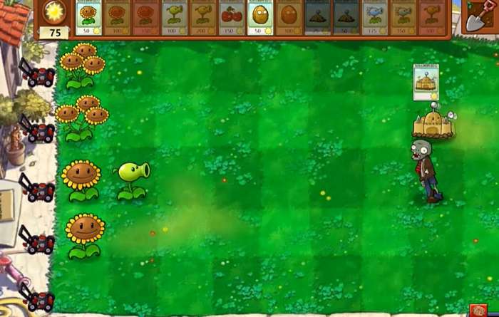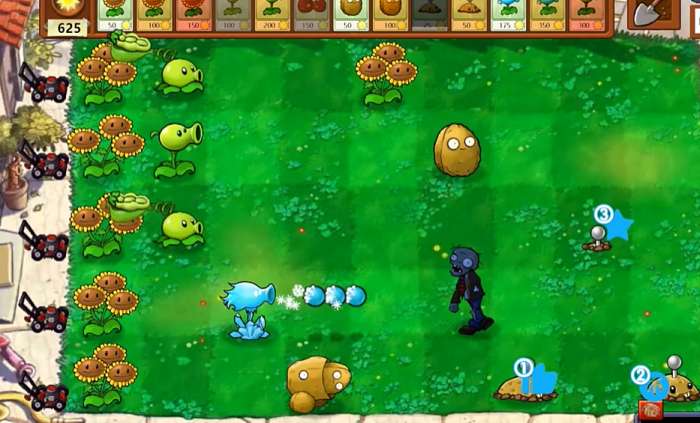 根据地形和僵尸种类布置植物。例如,向日葵可以放置在第一排以产生阳光,豌豆射手和坚果墙可以放置在第二排以防御僵尸。