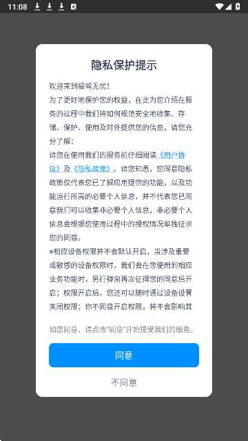 1、同意用户协议,进入福驾无忧app。