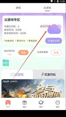 1、在“云游戏”功能栏,点选“开通云手机”。