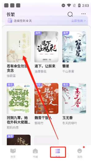 5、返回到软件主页进入“书架”,即可十分简明的阅读所收录的小说作品