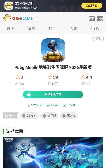 pubg正版地铁逃生 2026最新版 v4.11.13MB