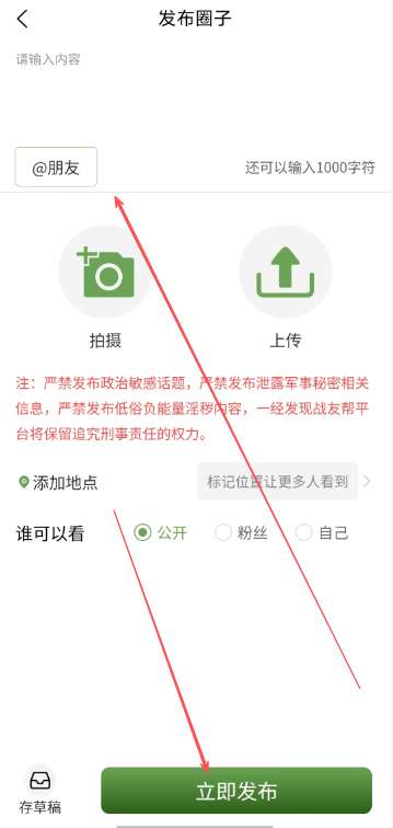 3、最后,在帖子圈页面上输入内容。你也可以@朋友,上传图片、视频和其他内容,点击“现在发布”。