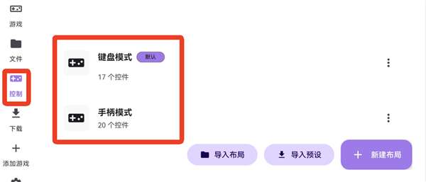 6、导入完成后不用急着启动游戏,点击左边的【控制】可以按照自己的喜欢设置布局。