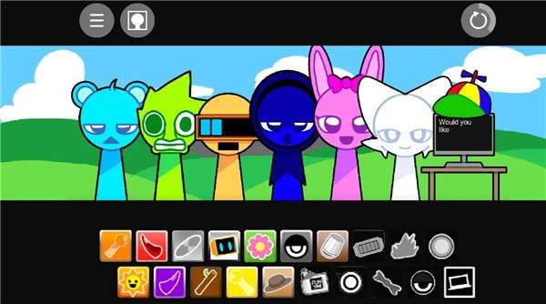 1、精美画面设计:节奏盒子Sprunki DX采用了卡通风格的画面设计,角色形象生动可爱,场景细节丰富,色彩鲜艳,给玩家带来视觉上的享受。