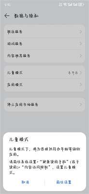 2、进入“个人中心”后,点击“设置”,现在数据与隐私中的儿童模式”;