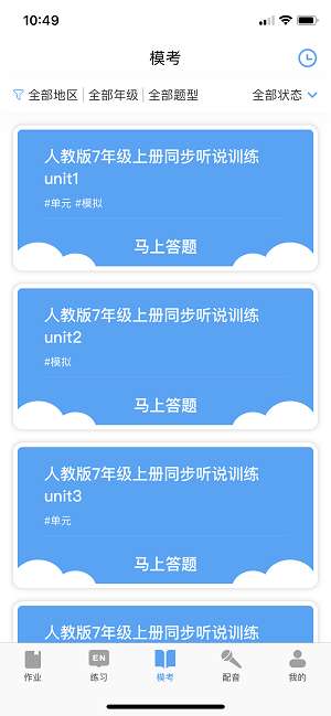 2、模拟的口语考试还原真实考试场景让训练更高效;