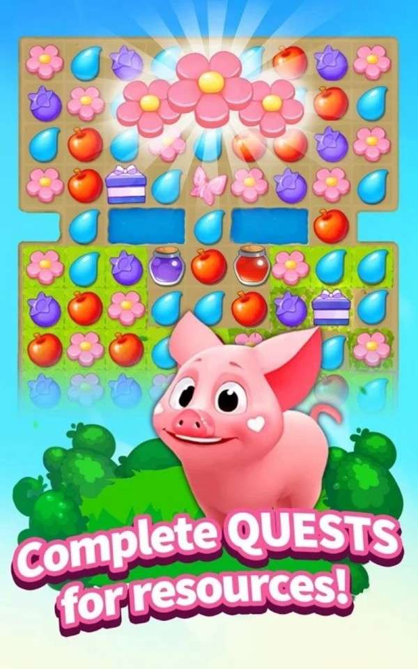 后院消消乐为什么叫做后院消消乐?就是在一个农场庄园中,有一个后院开启了一些挑战的任务,里面有很多不同的动物,小狗,小鸡,还有小猪。在这里要达成的任务就是利用相处的方式来获得更多的故事碎片,以及一些道具完成这些动物们在参与的生活故事。里面的夏楚原素有苹果水滴,还有豌豆苗以及其他的农场蔬菜元素。每次的任务都会增加一些难度,还有就是障碍。
