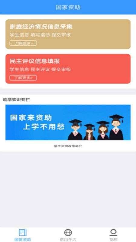 1.国家来资助,不用担心上学,大学生自助政策体系。