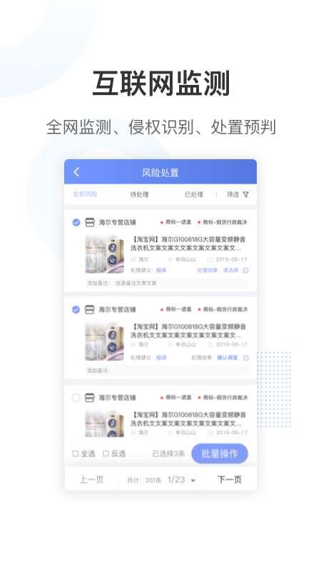 2、综合治理,在进行识别侵权商品后,会直接对点进行通知用户,让用户进行各种申诉,帮助每一位进行投诉维权