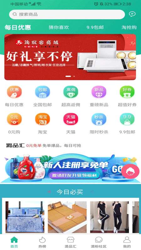 每日精选、限时购物、新人专享等几个购物板块推荐最佳购物单,让带优惠券的购物更实惠。