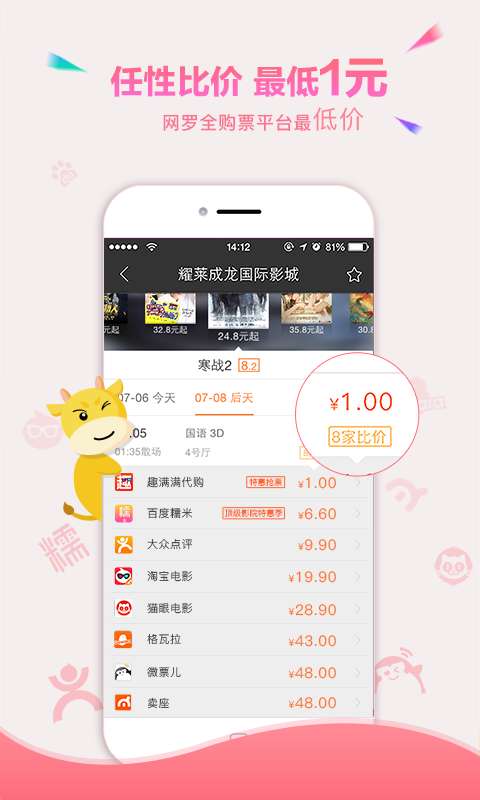1、可以自定义的搜索自己想要的电影门票,可以搜索一系列的电影推送,让自己可以获得更适合自己的电影选择。