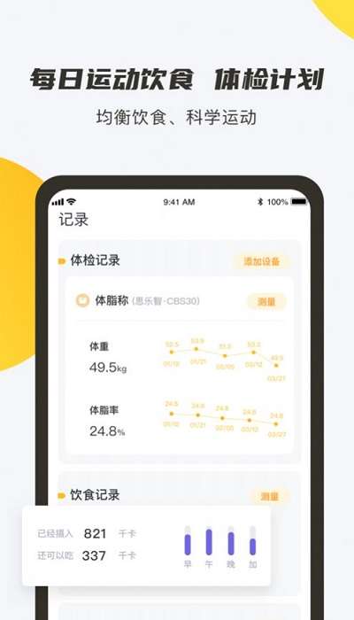 1.智能健康的减肥工具,卡路里、体重、步幅、周长,这些您可以记录下来并进行分析。