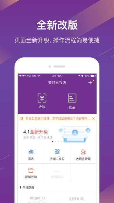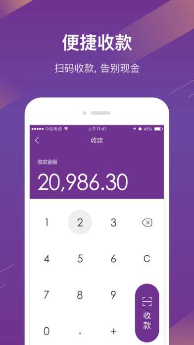3.[收据]商家可以快速打开微信支付,支付宝,QQ钱包,京东钱包等多种支付方式,并支持消费者扫描二维码和刷卡支付,方便收款。