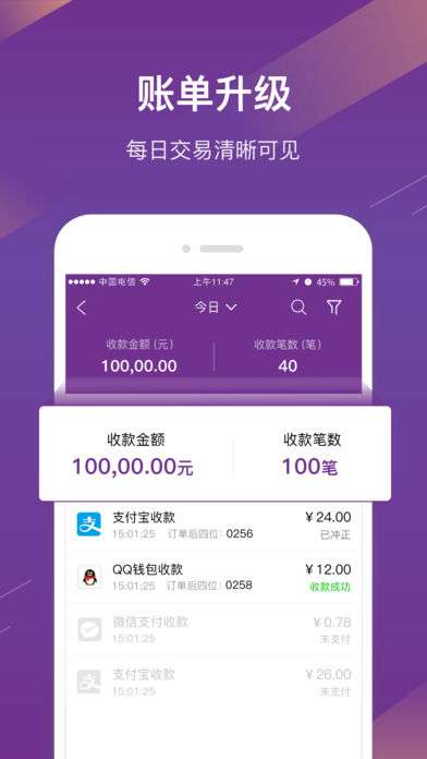 1.[账单]查询交易订单的状态,分析多维收据,一目了然地了解每日收入,实时控制您的业务状况。