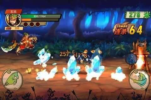 游戏以回合制的表现形式来实现。游戏操作很简单,左边虚拟键跳跃,右边虚拟键武器攻击!每个关卡中玩家一路过关斩将奋勇杀敌,杀到半路,目标人物出现,你就要追赶这个人物。在限定的1分钟内杀掉这个人就顺利过关,1分钟内还没杀死此人就闯关失败!