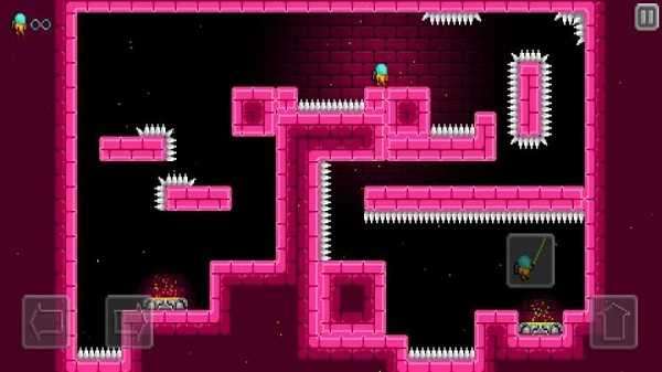2、关卡中设置了非常多的尖刺和障碍,考验玩家操作,甚至有时候令人抓狂。