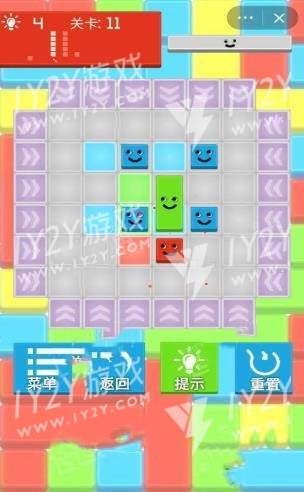 把每关中不同颜色的方块,推到与其颜色相符的空格里。
