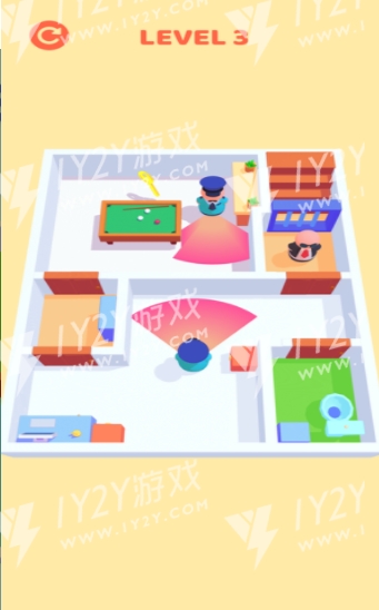 游戏的整体玩法非常有趣,玩家需要想办法将警察的视野绕开才能通过;