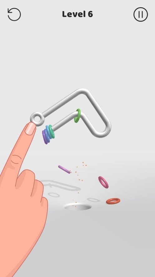 3、关卡难度程度不一样,前面只有几个小圈,到了后面有超级多圈圈给玩家们慢慢的套。