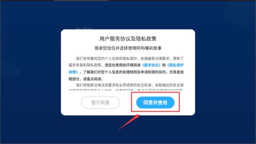 1、首次启动应用程序时,请单击“同意”并使用服务协议和隐私政策。