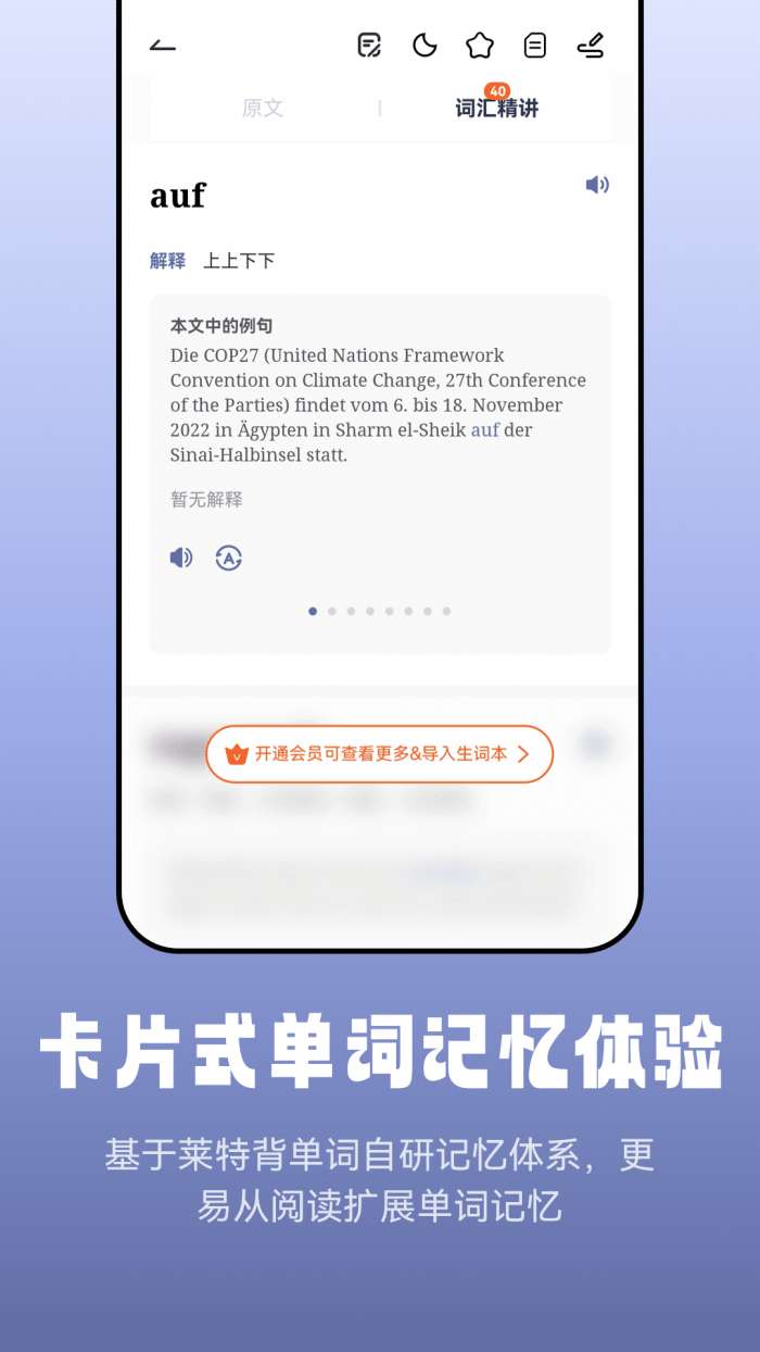 2、与莱特德语学习背单词无缝集成,查词典、背单词轻松搞定。
