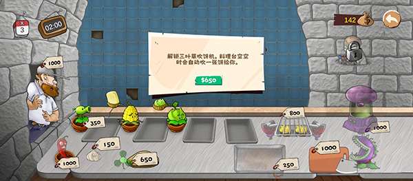 1、食材即武器:卷心菜自动切丝、双发豌豆射手加速出餐,植物技能与美食制作深度绑定,策略选择影响战局。