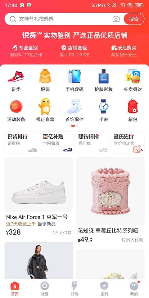 识货app是一个高性价比的产品指导平台,深受年轻人的青睐。汇聚运动、潮流、生活、时尚等多种商品,提供国内外各大商场的各种折扣信息,助你全网购买最具价值的商品。它为用户提供一站式购物体验。它具有强大的社会功能。用户可以在应用中关注其他用户,了解他们的购物体验和匹配技巧,也可以通过点赞、评论等方式与其他用户进行互动。