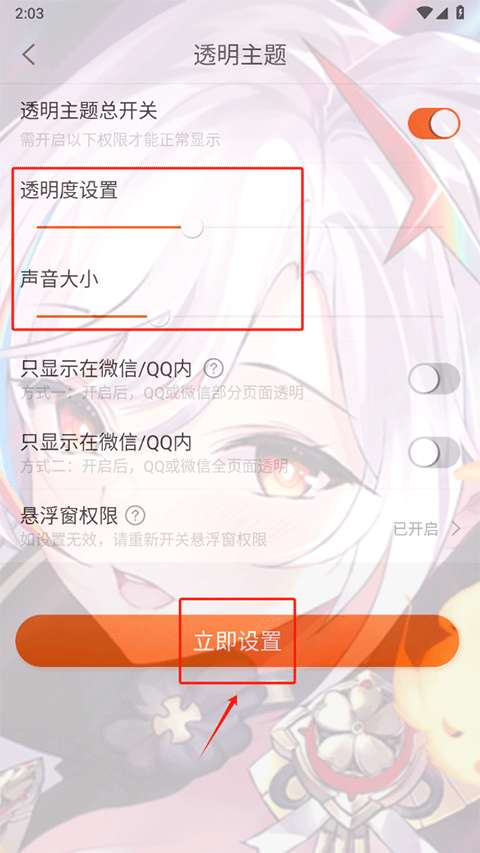 3、动态壁纸需要再相册中选择一段视频,静态则需要一张图片,导入后再调整壁纸的透明度和声音大小,最后点击立即设置即可